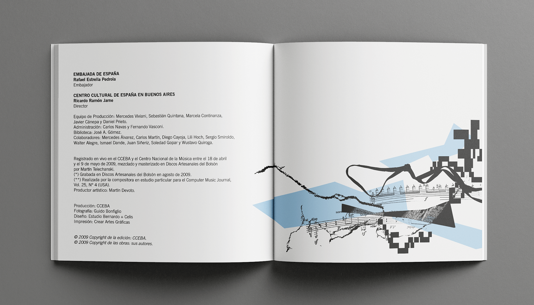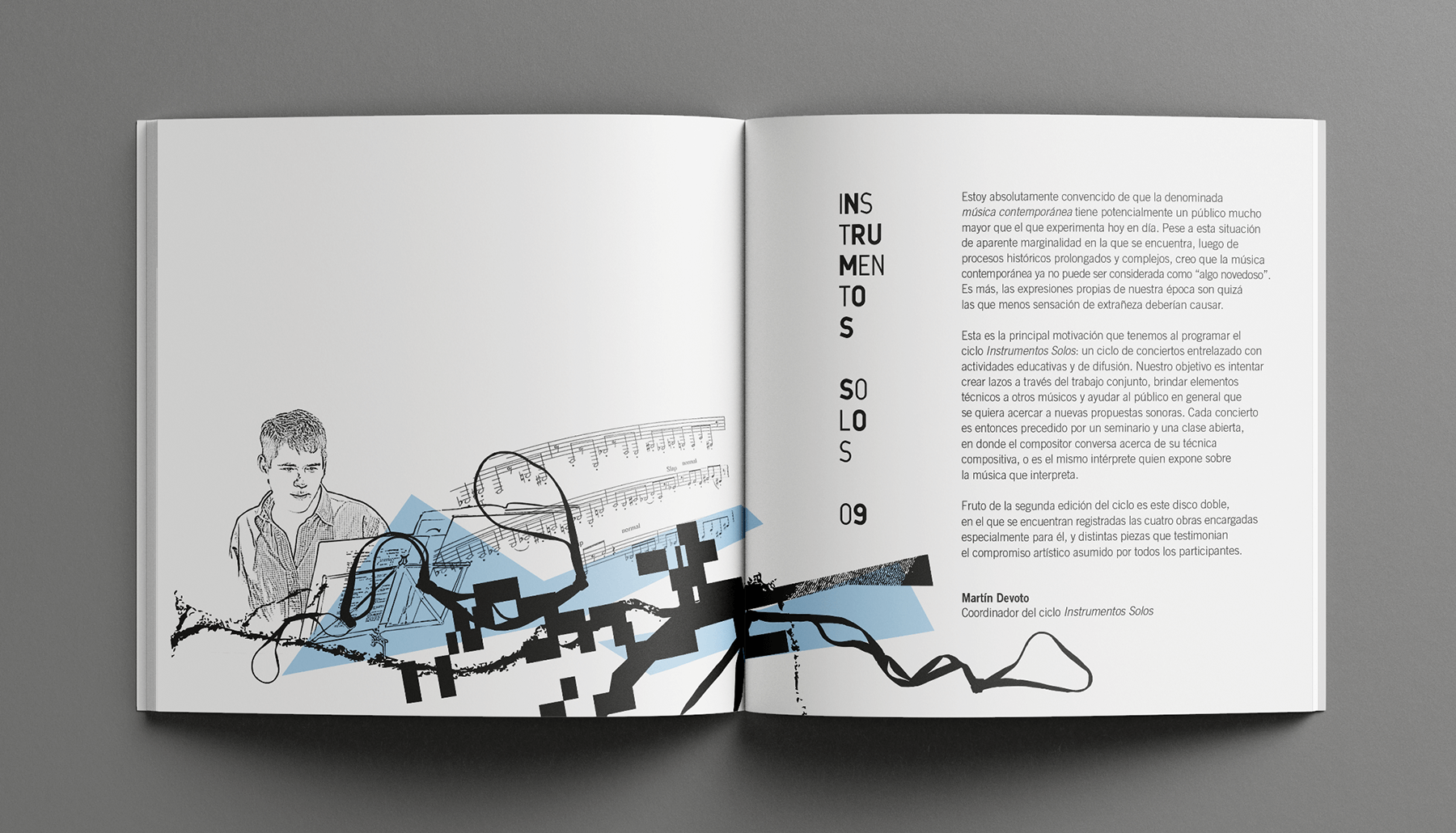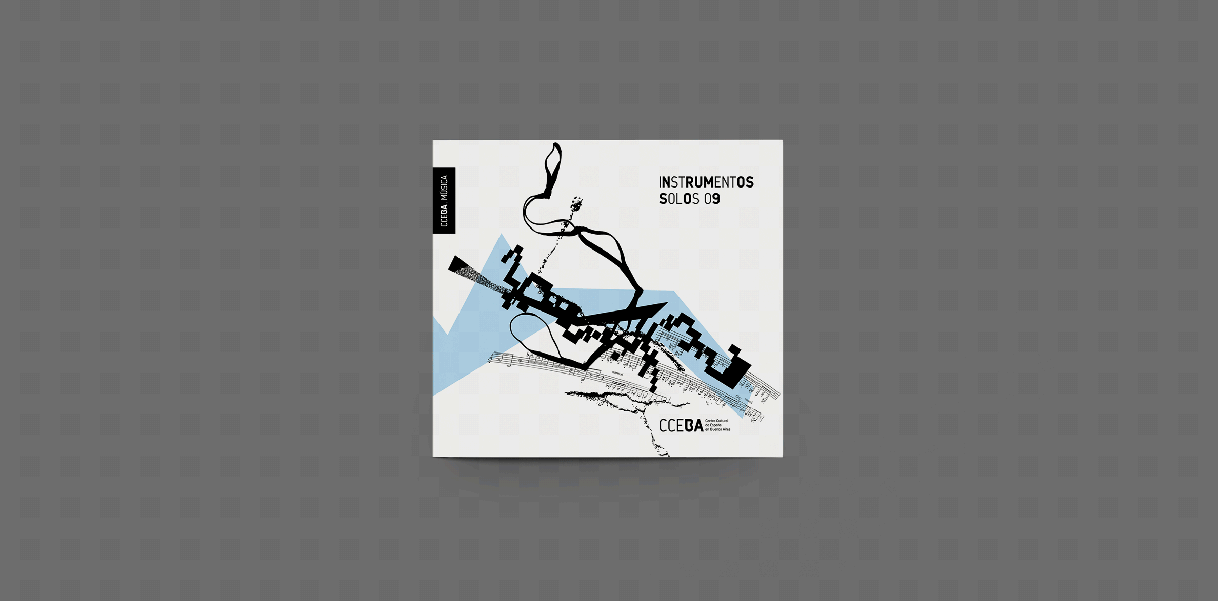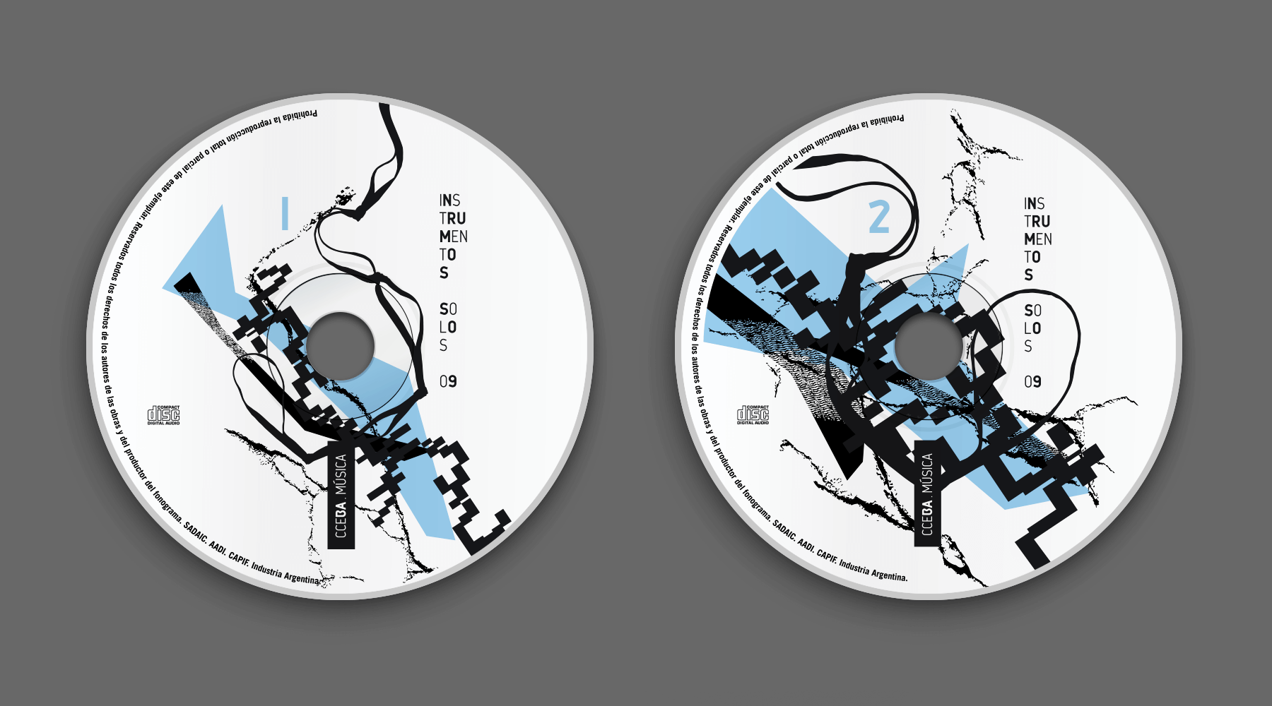 Diseño del disco doble de música contemporánea que reúne todas las obras originales creadas en el marco del 2º ciclo Instrumentos Solos coordinado por el artista Martín Devoto en el CCEBA / 2009